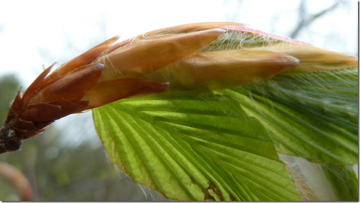 we have white toothwort. You may recall we’ve been waiting for beech buds to open. We’re using our patented time-lapse technique to show the process in slow motion. (Um, the technique is where you just look for a bunch of different buds, occasionally on different trees, at different stages in the process. I tell you, I am made of magic.)